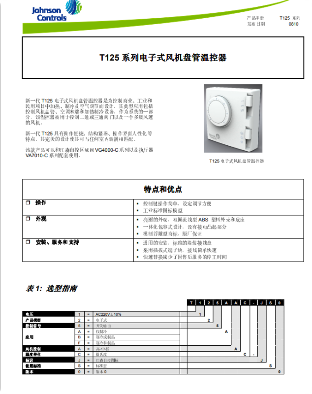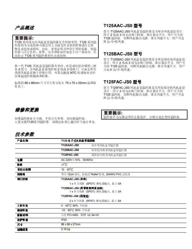 常用型号:T125AAC-JS0、T125BAC-JS0、T125FAC-JS0