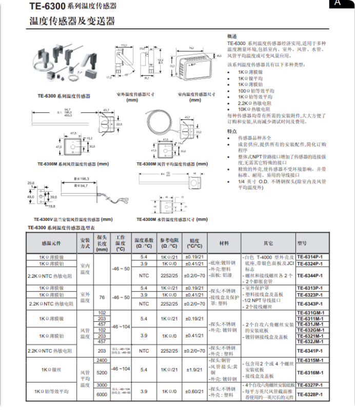 TE-6300温度传感器