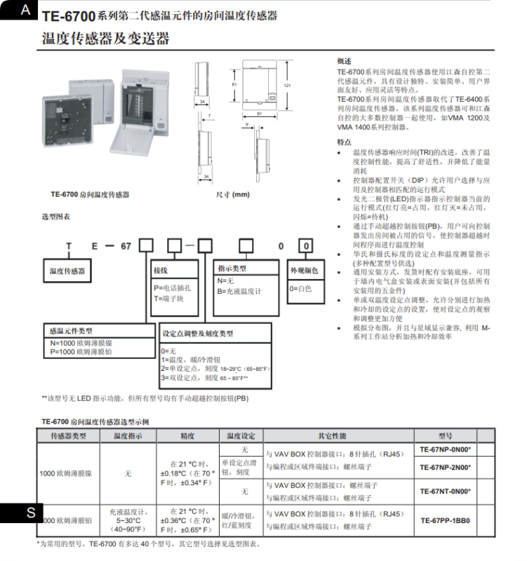 相关产品:TE-6300温度传感器 、TMx1600带LCD的房间温度传感器、A99温度传感器