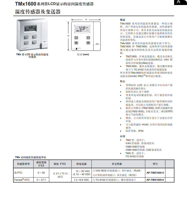 相关产品:RS-1100房间温度传感器、TE-6300温度传感器、A99温度传感器