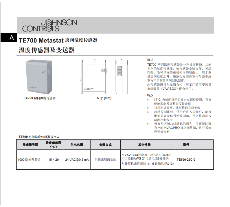 相关产品:TE-6300温度传感器 、TMx1600带LCD的房间温度传感器、A99温度传感器