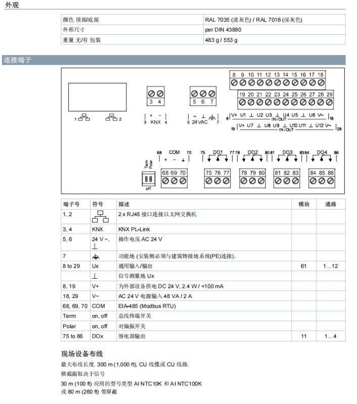 ●可通过 Modbus RTU 或 Modbus TCP 集成 Modbus 数据点