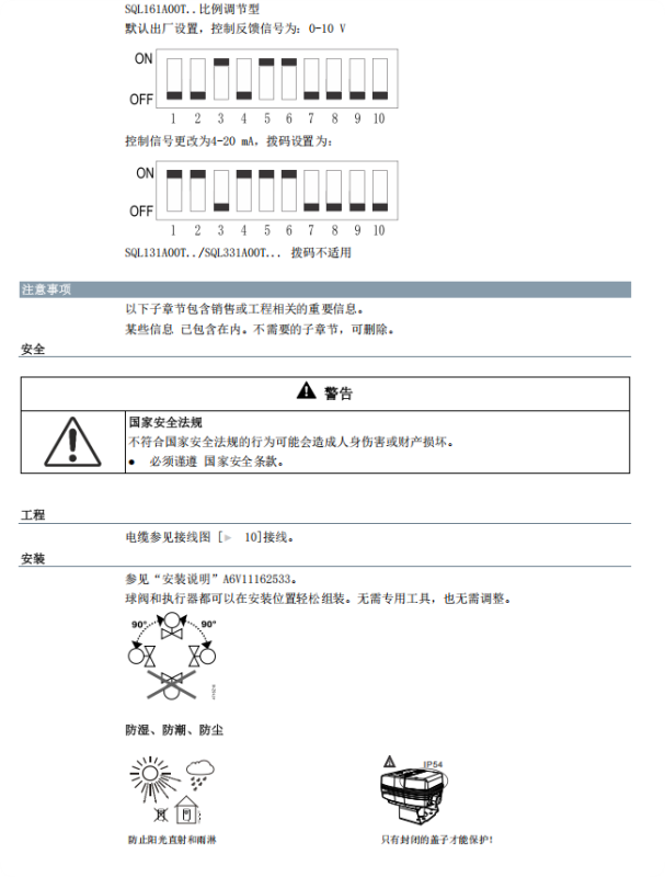 适用于VAF41..系列的阀门执行器,用于暖通空调系统,作为控制以调节和关闭球阀。