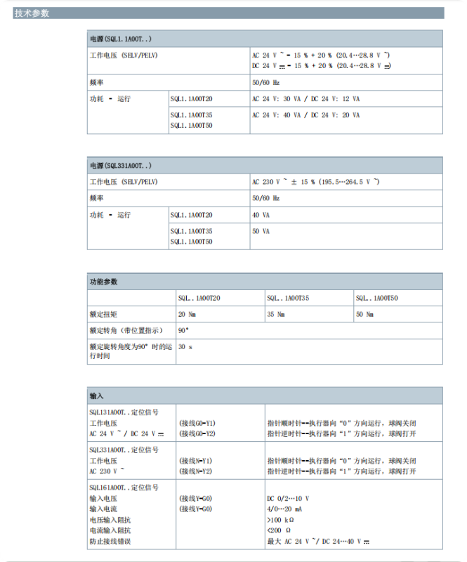 ● SQL131A00T..,工作电压AC 24 V ~ / DC 24 V ⎓