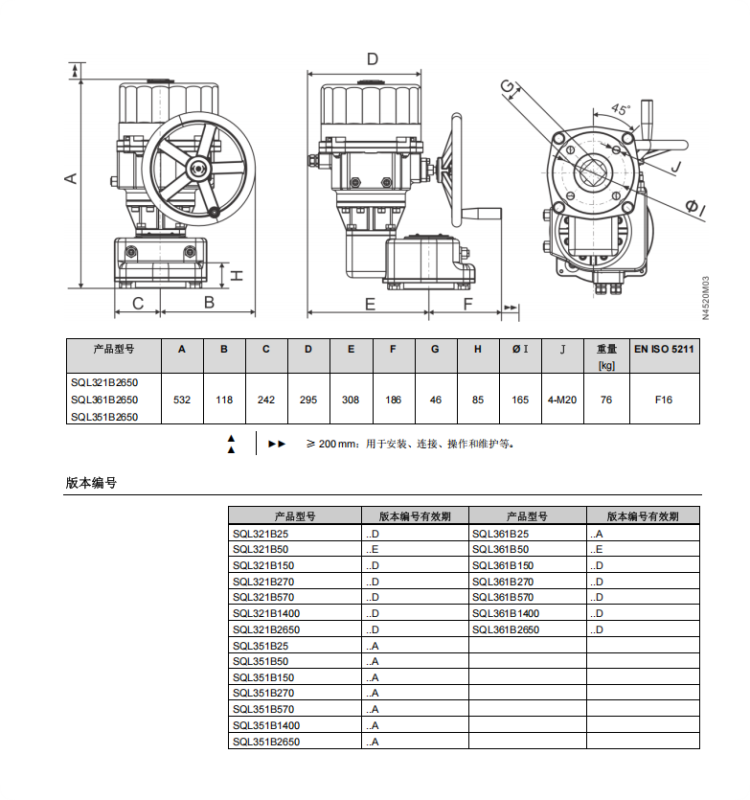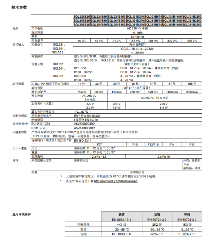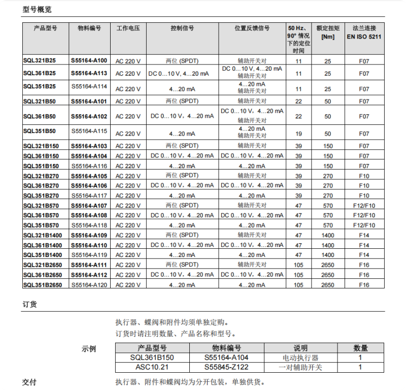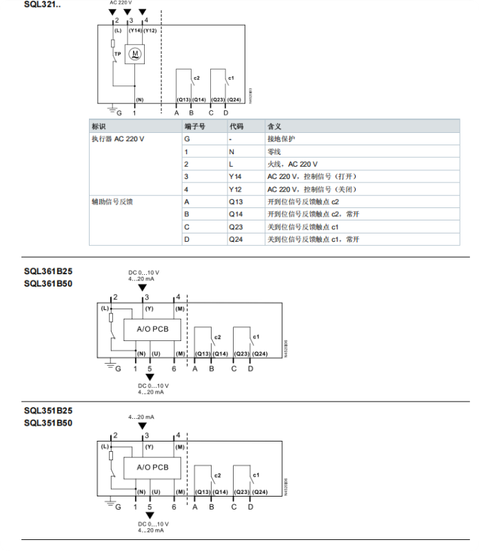 • SQL351B.. 工作电压 AC 220 V、4…20 mA 控制信号,断信号保位