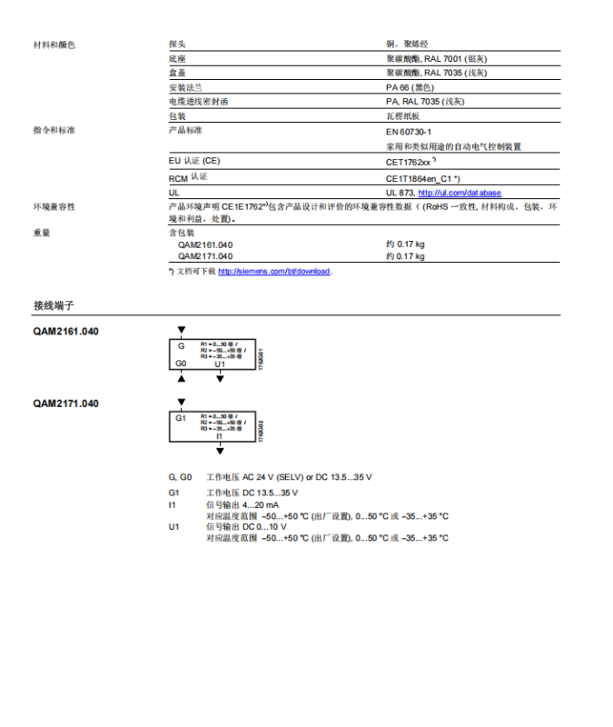 · 输出信号 DC 0...10 V 或 4...20 mA
