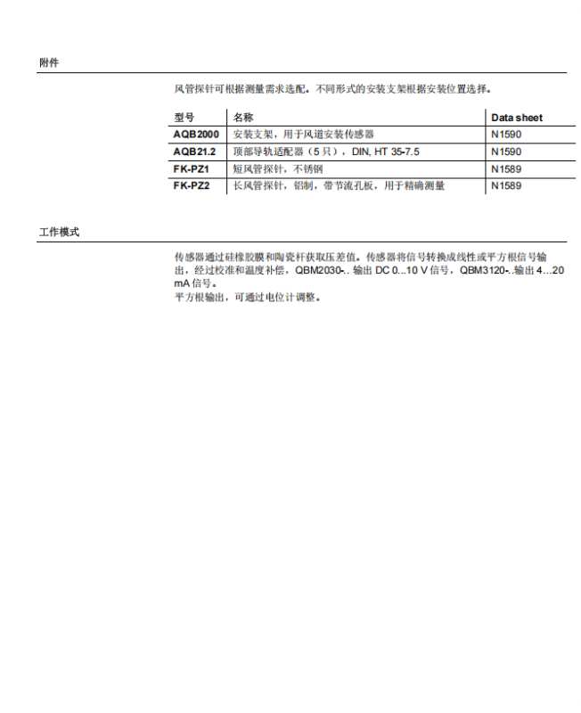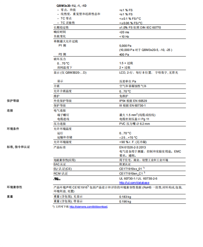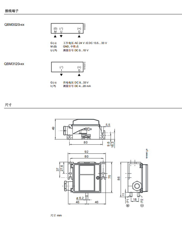 · 输出信号:QBM3020-..: DC 0...10 V/QBM3120-..: 4…20 mA