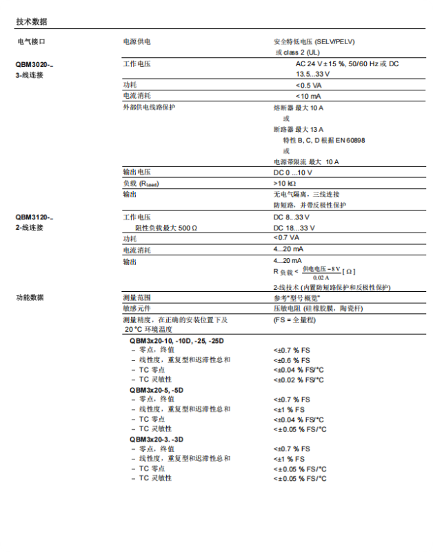 · 工作电压:QBM3020-..: AC 24 V / DC 13.5…33 V/QBM3120-..: DC 8...33V